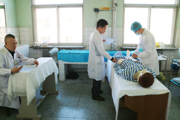 考核共设立五个考点同时进行,教学部聘请我院11位老师担任评委,小儿骨科王勇老师负责病程书写考核,脊柱外科邢文华和创伤科吕慧成老师负责阅片、查体考核,急诊科张坤和安然老师负责心肺复苏考核,孙韬和郭文奇老师负责四肢石膏外固定考核,骨肿瘤科赵伟和王玉鑫老师负责肿物切术考核,手外科爱新觉罗·启承和创伤科张葆鑫老师负责清创缝合术考核。