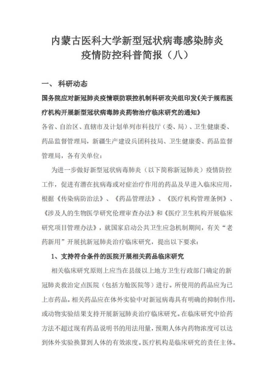 内蒙古医科大学新型冠状病毒感染肺炎疫情防控科普简报(八)
