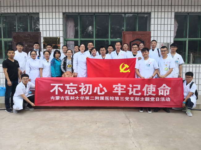 为庆祝中国共产党成立98周年,深入学习贯彻党的十九大精神和习近平新时代中国特色社会主义思想,弘扬党的光荣传统和优良作风,以实际行动展现新时代党员风采。2019年6月30日,我院第三党支部组织脊柱外科、关节外科及药剂科的20余名党员、医护人员来到乌兰察布市卓资县梨花镇土城子行政村开展“健康行·暖人心扶贫义诊”主题党日活动。