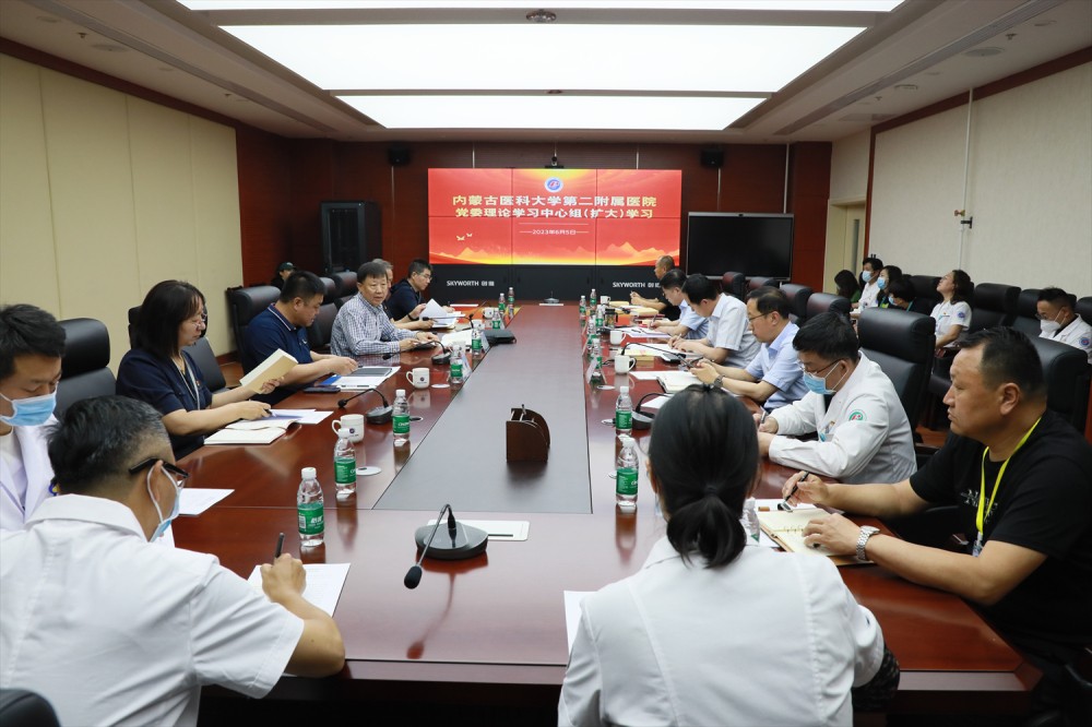 6月5日,按照医院党委统一部署,我院在综合会议室召开党委理论学习中心组(扩大)学习研讨,围绕学习贯彻习近平新时代中国特色社会主义思想主题教育进行专题学习,并展开研讨交流。内蒙古医科大学主题教育督促指导第二工作组成员任鹏,医院党委领导班子,全体党支部书记,医务部、护理部、门诊部等相关职能科室负责人参加会议。会议由党委书记刘万林主持。