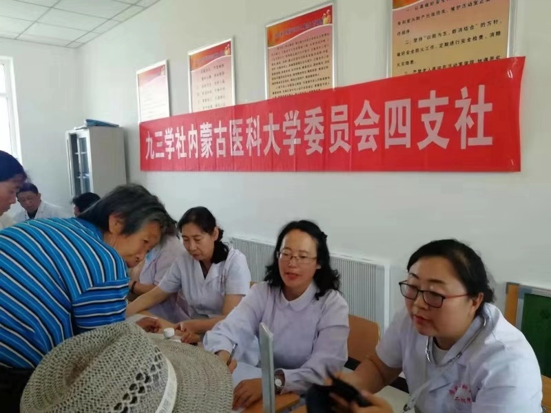 为了践行习近平总书记“不忘初心、牢记使命”主题教育,推动精准扶贫工作深入开展,进一步解决贫困群众就医难问题,九三学社内蒙古医科大学委员会四支社部分医护人员于2019年7月27日深入国家级扶贫地区锡林郭勒盟太仆寺旗千斤沟镇民众村开展送医送药、扶贫义诊活动。