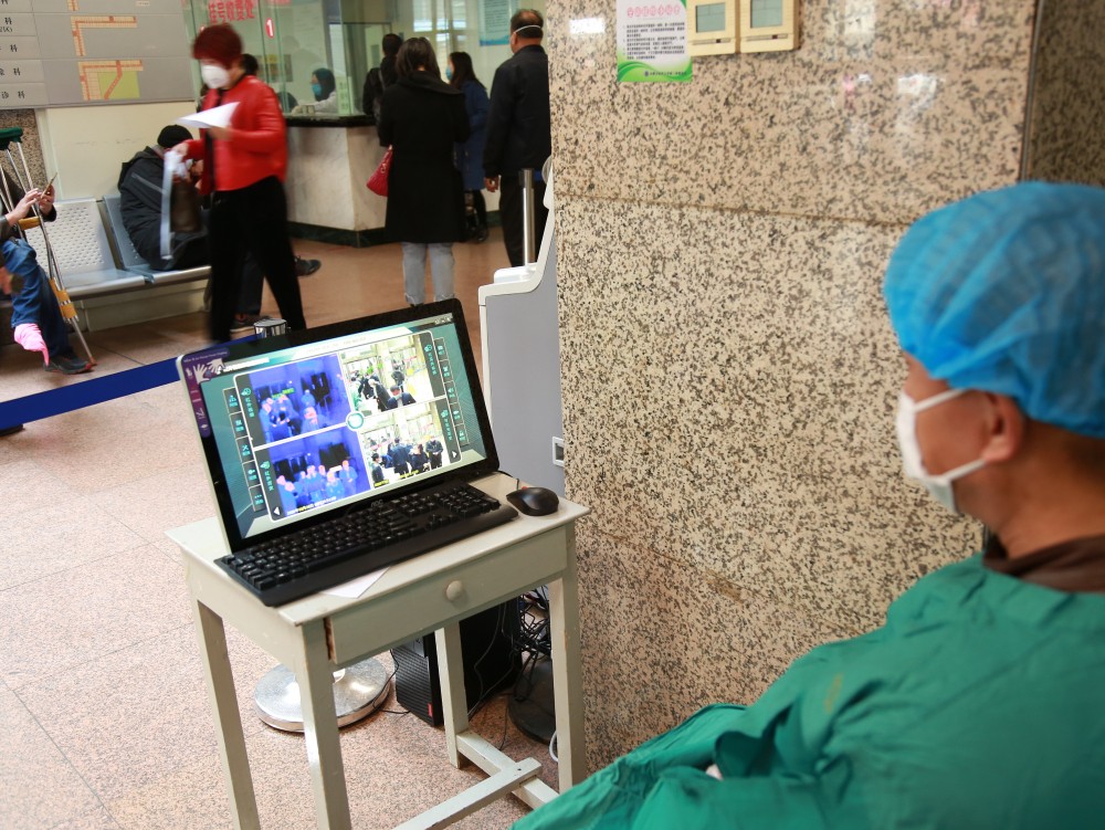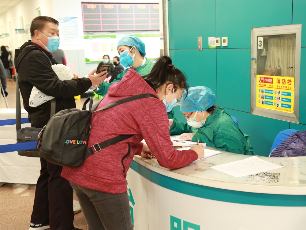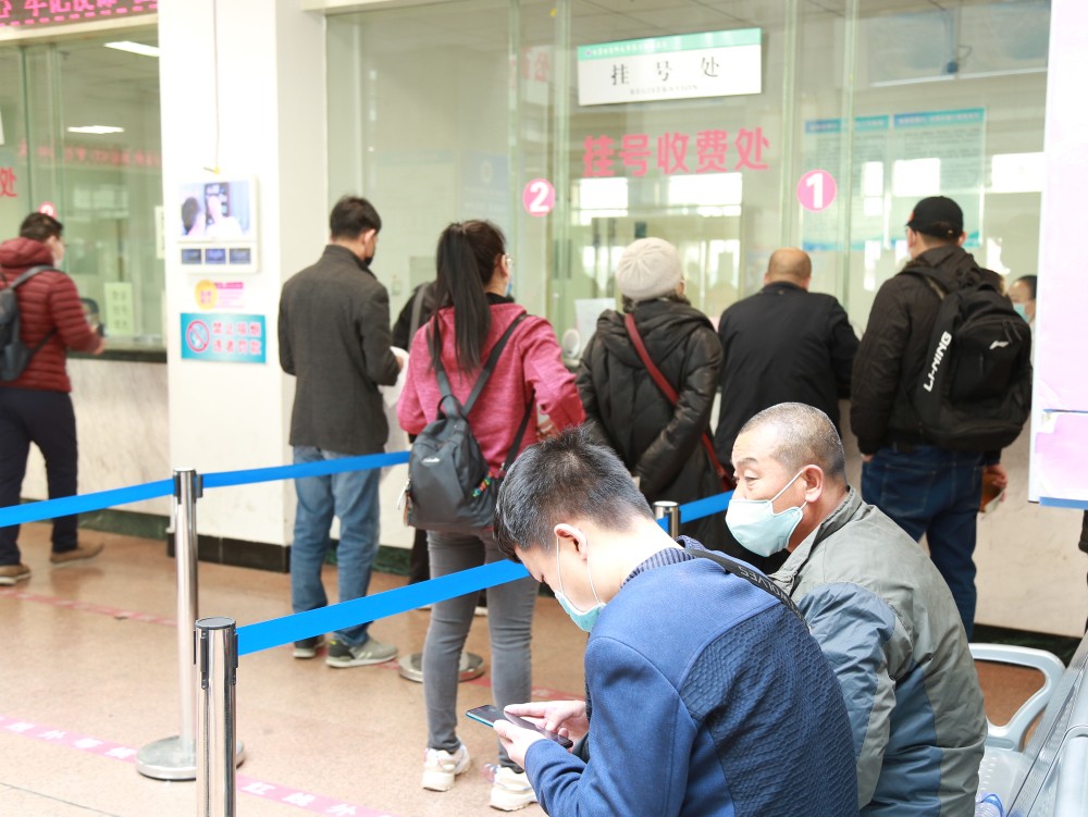 入院后,门诊预检分诊处对来院就诊的患者及家属进行严格的体温检测。门诊挂号时,就诊患者须携带有效身份证件或医保卡等有效证件,并佩戴口罩。为避免人员聚集,严格控制排队挂号人员距离。