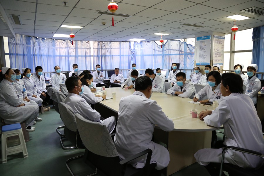 王院长听取科室早交班情况后指出,今年是“十三五”规划收官之年,过去的五年中,在全院职工的共同努力下,医院各项事业收获颇丰,新医院将于年底全面竣工,2021年上半年实现整体搬迁;医院学科建设、科学研究、科研立项、技术升级取得骄人成绩,连续两年获自治区自然科学技术一等奖;医院召开两次科技创新大会,拿出近1000万元对在科研、教学、管理等方面取得突出成绩的集体和个人给予奖励;医院运营和医院管理成绩显著,在2018年度全国三级公立医院绩效考核中,医院排名第六,在全国576家专科医院中荣获A级评价。特别是面对今年突如其来的新冠肺炎疫情,全院职工齐心协力,无私奉献,为疫情防控工作做出了应有贡献。