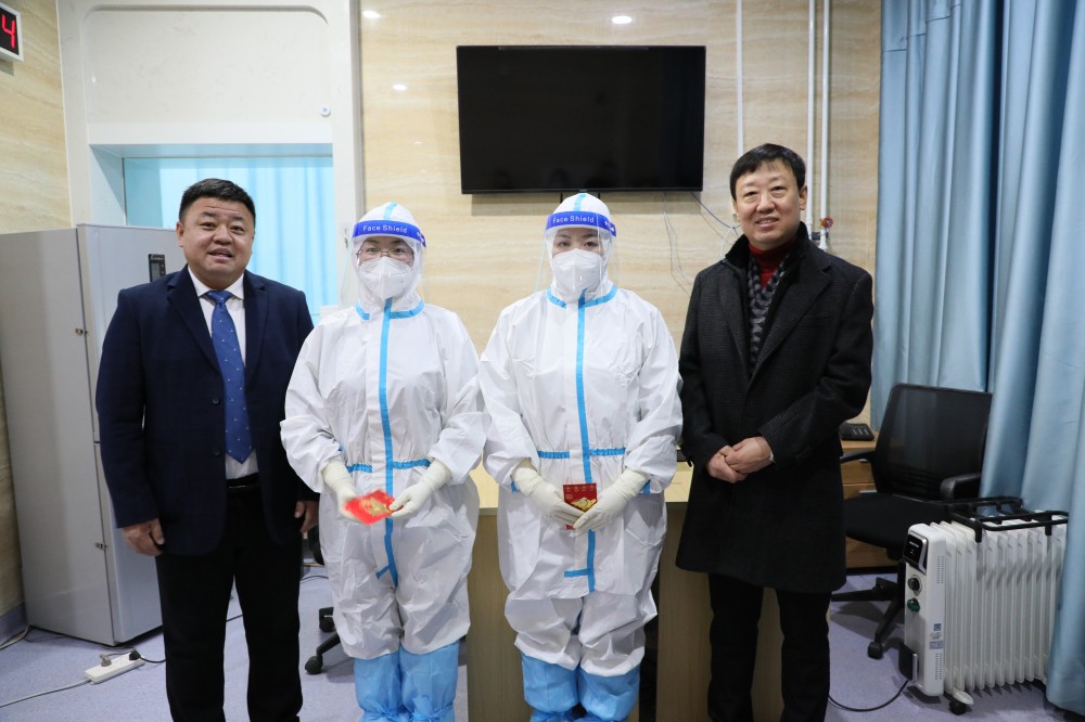 在举家团圆的除夕夜,院领导没有忘记奋战在一线的值班人员,当晚18:00,医院党委书记刘万林,党委副书记、院长王国强,党委委员、纪委书记跟锁,党委委员、副院长邱颐及相关行政职能科室负责人来到医院,安排部署了医院新冠肺炎疫情防控工作,并慰问了节日期间坚守在岗的值班人员,与他们一道共迎除夕之夜,让他们感受到家的温暖。