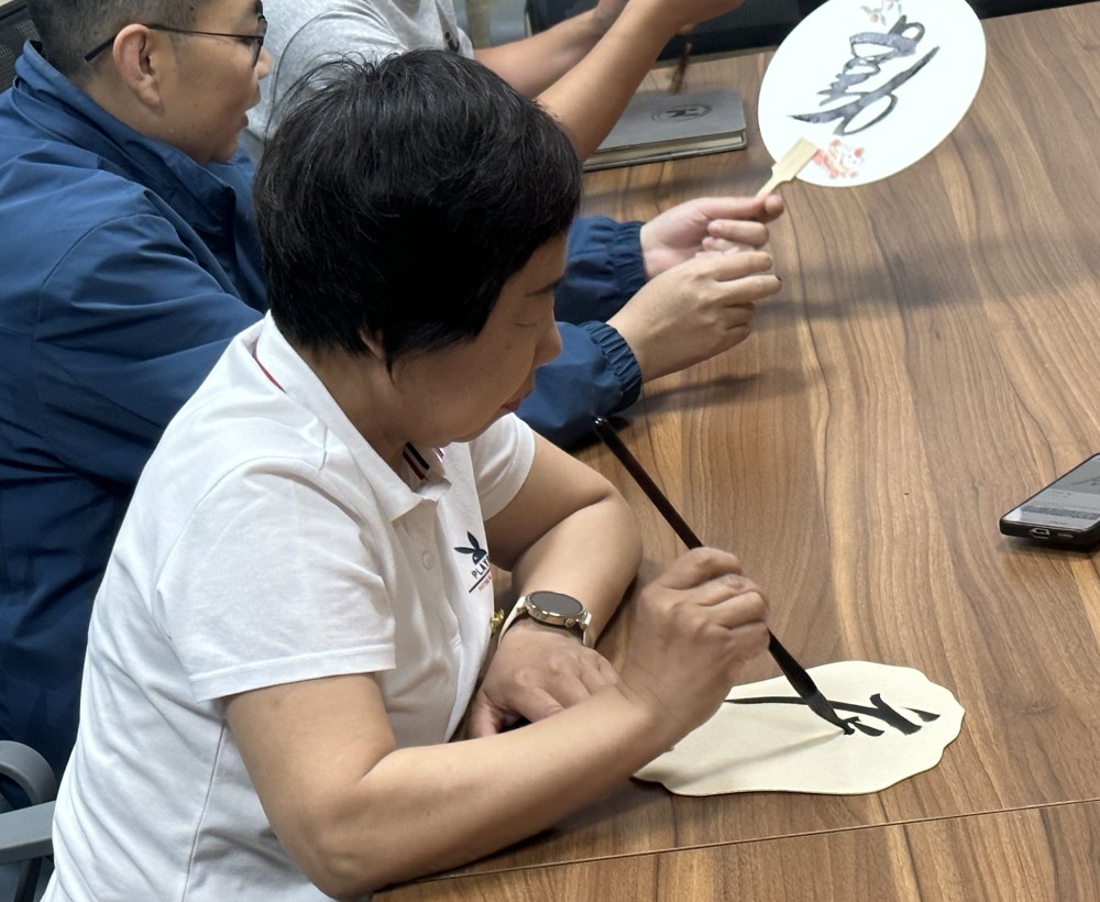 为丰富党日活动形式,支部还精心准备了古风造型的扇子赠予在场人员,引导大家放下键盘、放下鼠标,拿起毛笔,将“廉”字创意书写在扇子上,感受中华文化的博大精深,增强党员的“文化自信”,在一撇一捺中感受“廉”字的深层含义,揣摩和激发廉洁自律的精神力量,挥毫泼墨中展现医院职工的创作风采。