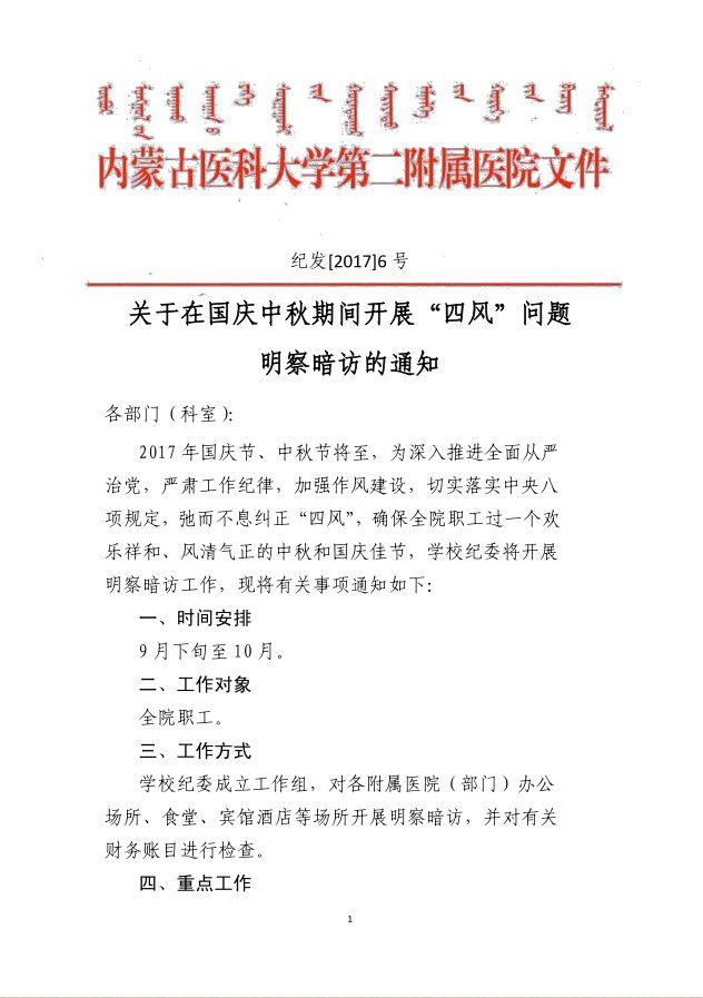 【工作动态】关于在国庆中秋期间开展“四风”问题