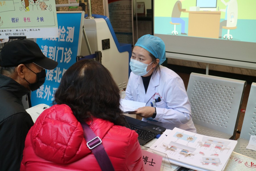 上午9点,义诊活动吸引了不少就诊患者及家属前来咨询。我院骨内科冬梅博士为大家提供了专业的指导及咨询,向其讲解预防骨质疏松的知识,并及时为有需求的患者提供诊疗服务。上午10点,冬梅博士通过骨质疏松知识科普线上直播形式,回答网友提出的各种关于骨质疏松的问题,赢得了广大群众的一致好评。一个小时的义诊活动,共为100余名群众提供诊疗服务,发放科普宣传资料200多份。网上直播则获得了2000多次点赞互动。