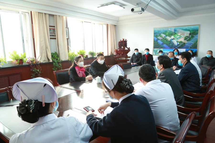 乌兰书记一行到预检分诊处、急诊科等部门,了解新型冠状病毒感染的肺炎防控工作的开展情况。随后在行政四楼会议室听取了我院新型冠状病毒感染的肺炎工作汇报。王国强院长代表医院从对新型冠状病毒感染的肺炎防控工作的重视程度、医疗防护用品储备、医务人员培训、诊室、院内环境消杀、急诊分诊管理、双岗值班等方面做了简要的汇报。