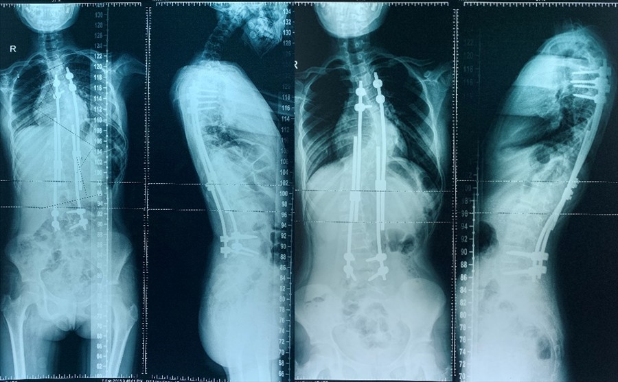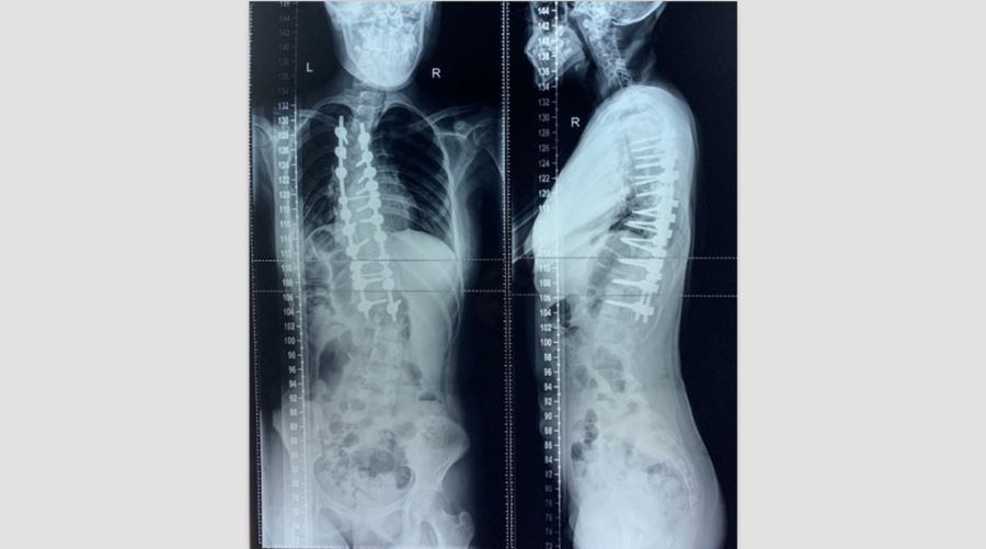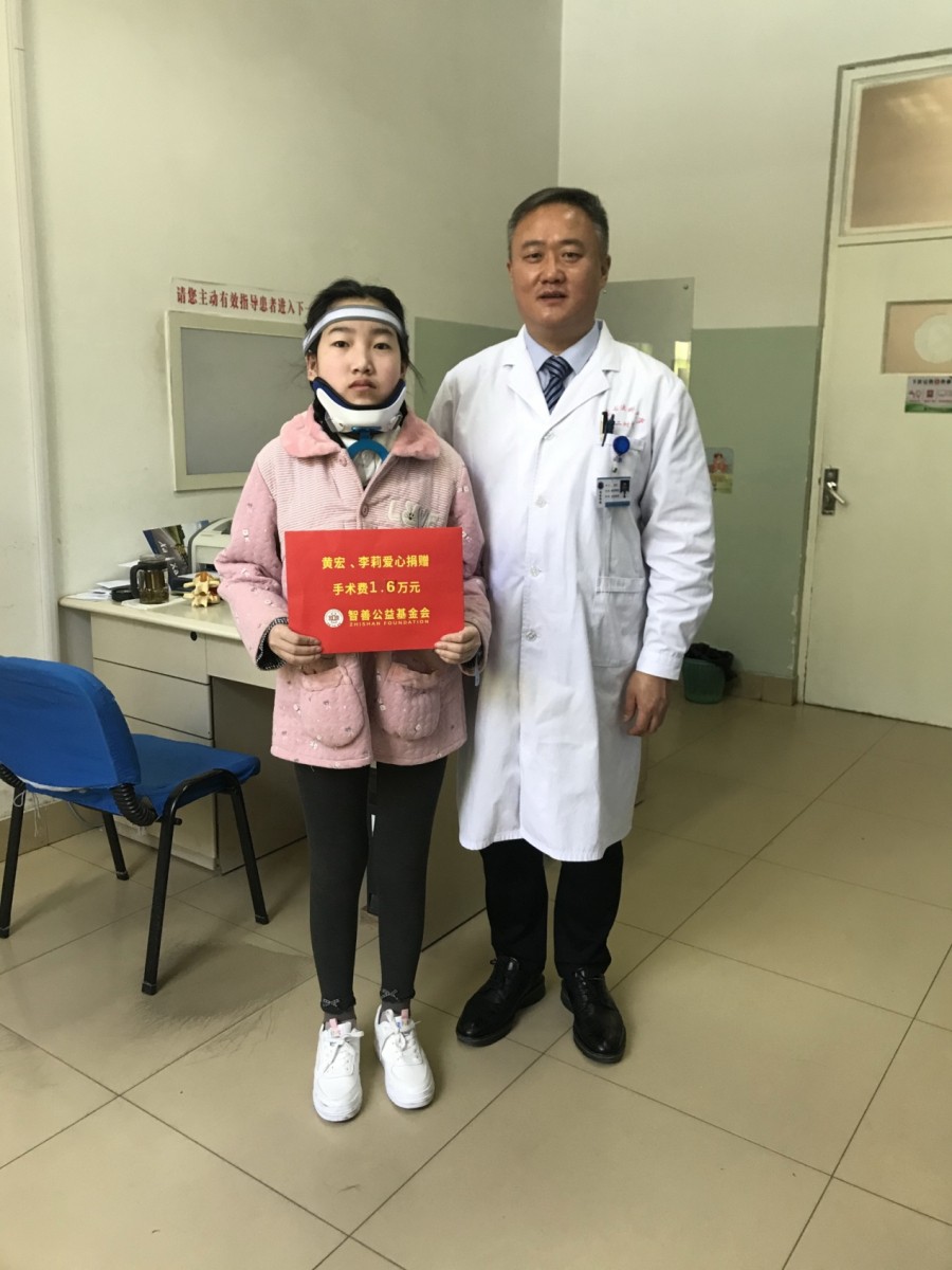 身为白求恩公益基金会分会委员、内蒙古分会秘书长的赵岩医师得知患者家庭情况后,主动向患者及家属介绍白求恩公益基金、智善公益基金情况,以帮助患者减轻经济负担。在征求患者及家属同意后,团队经过反复讨论和充分准备,在麻醉科(手术室)紧密配合下,于2018年1月独立完成生长棒联合多米诺滑块置入矫形术,2018年8月、2019年6月独立完成两次生长棒延长术,并在2020年4月患者满13周岁时,综合评估后行彻底根治矫形术。术后患者身高较术前增长13cm,解决双肩不等高畸形问题,身体外观美观,患者及家属非常满意。