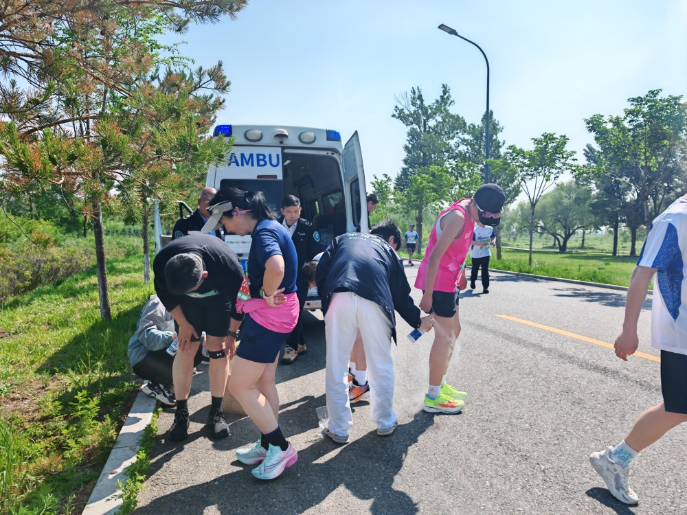 医疗保障小组当日凌晨4:30在医院集合,5:00抵达丝绸之路指定保障点、医疗点。在全程21公里的赛道上,我院在原有1个医疗保障点和1个移动急救站点的基础上,第二党支部抽调5名临床经验丰富的医护志愿者在终点守护。有综合外科专家、骨科医师、门急诊护理骨干,他们不仅积极参与应急处置,同时对急性运动损伤的相关知识进行了科普,以扎实的专业技能筑牢生命防线。