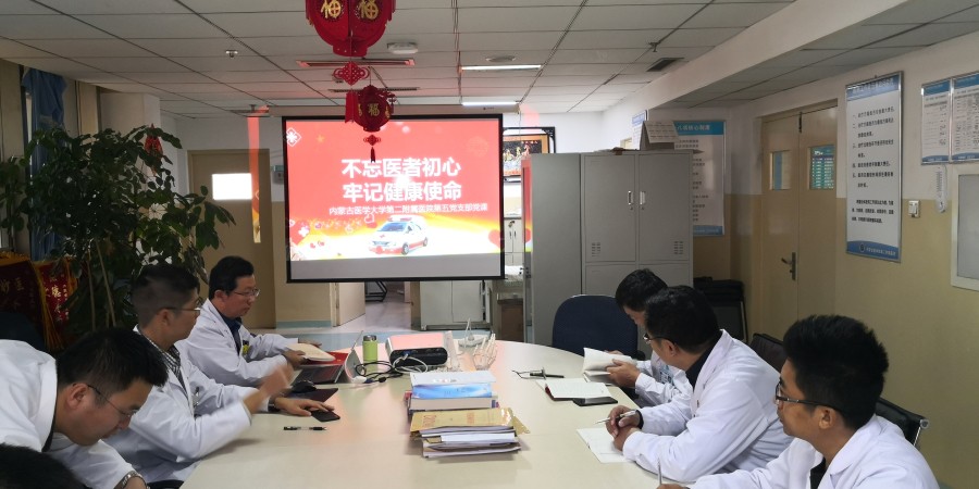 10月31日,第四党支部书记吕惠成在创伤二科医生办公室为支部党员讲授“不忘初心、牢记使命”主体教育专题党课,支部全体党员聆听了党课。吕惠成书记强调,作为一名医生,我们既然投身医学事业,就不能忘记自身的使命,为人类健康保驾护航。作为一名医生,应该更加严格要求自己,牢记神圣使命,忠实践行“不忘医者初心、牢记健康使命”的精神,以全心全意为患者服务为宗旨,在平凡的工作岗位上默默奉献自己微薄力量,为医疗事业努力奋斗!