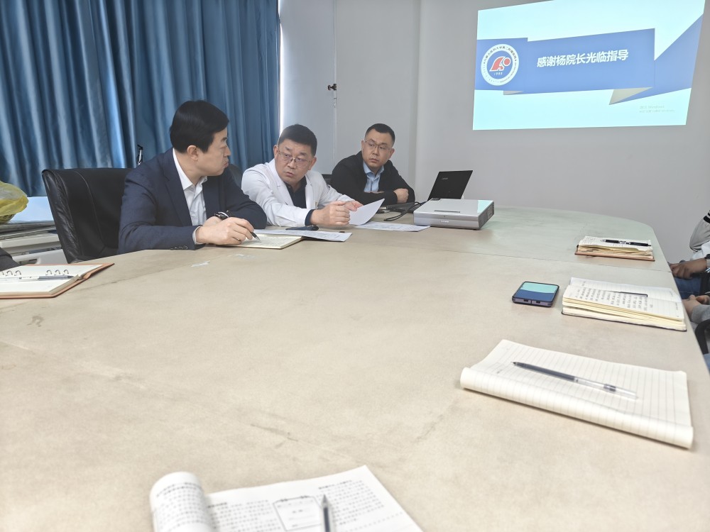 医学工程部翟中文部长代表医学工程部全体人员对院领导调研和指导工作表示热烈欢迎。刘铁副部长详细介绍了科室人员情况、具体分工 、日常工作以及2023年度的工作总结和2024年度工作规划情况,并详细汇报了包括耗材采购、设备维修、科研立项等具体工作的亮点,又提出了目前医学工程部面临的困难。翟中文部长对近期几项重要工作进行汇报。