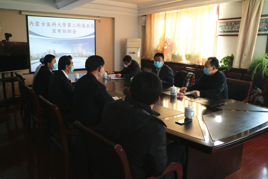 组织部部长巴音朝鲁同志宣读了学校党委《关于温树正同志免职退休的通知》和《关于王国强同志主持工作的通知》,学校党委决定,院长王国强同志自2020年1月起全面主持医院党委、行政工作。