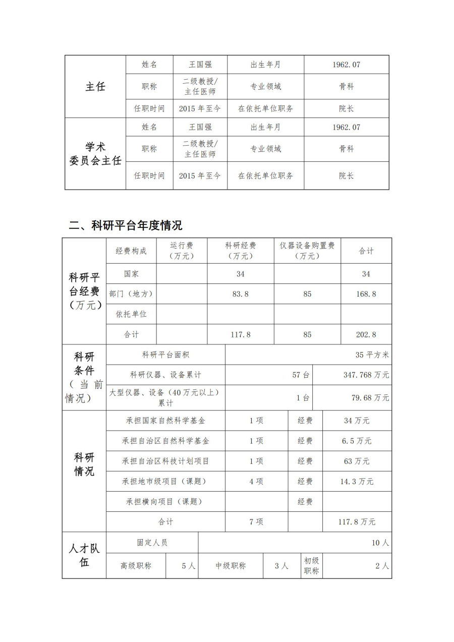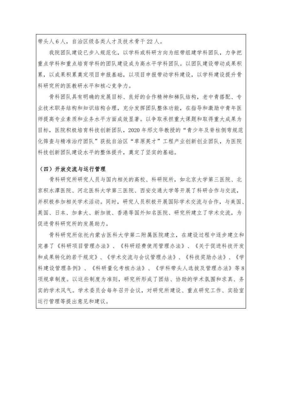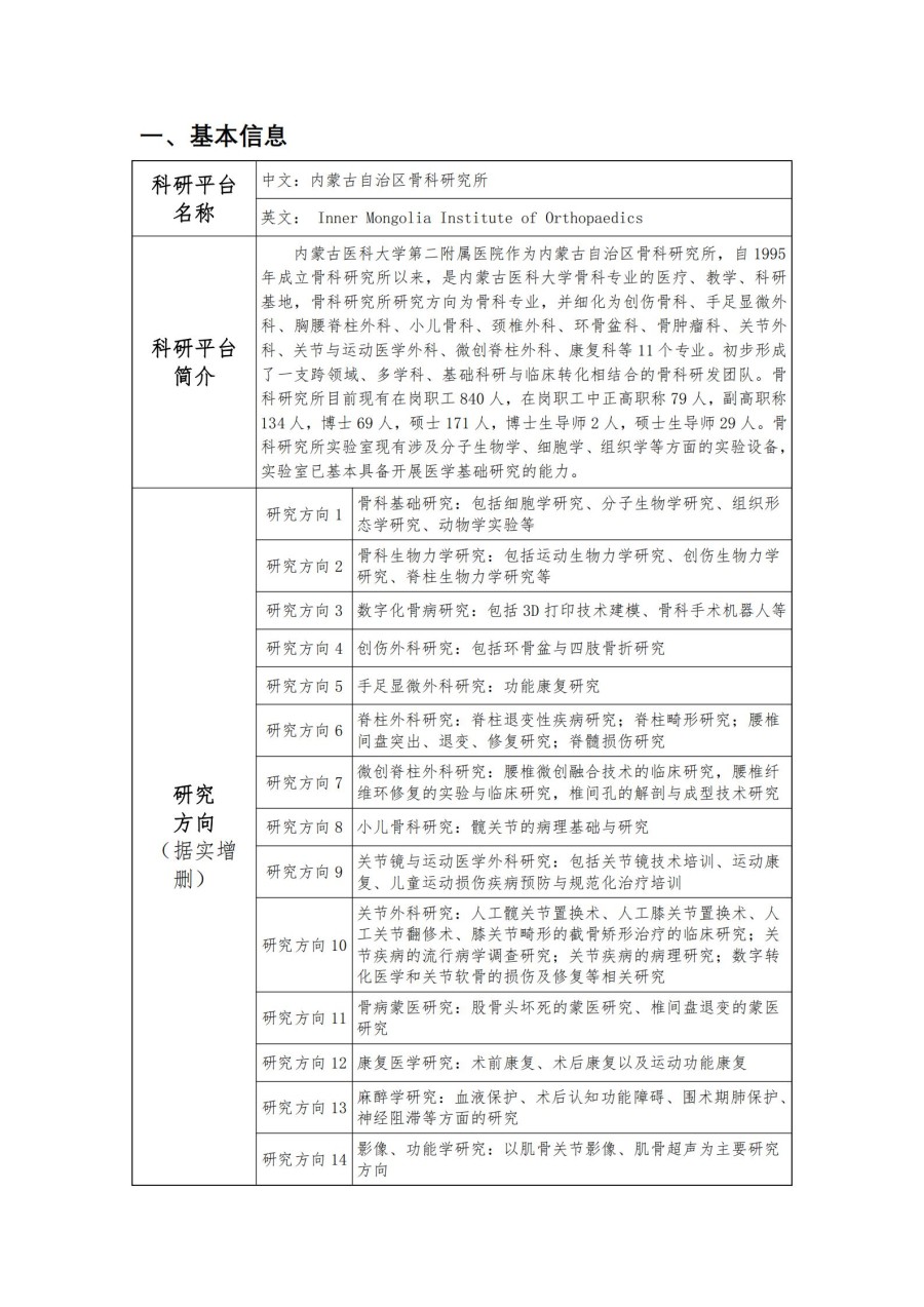 按照内蒙古医科大学《关于开展2020年度内蒙古医科大学科研平台年报填报工作》的通知及相关规定,骨科研究所完成了2020年度年报的填报工作,现将内容公示。自公示之日起三日(1月7日至1月9日)内如有异议,以书面或电话形式向科研科反映,过期不再受理。