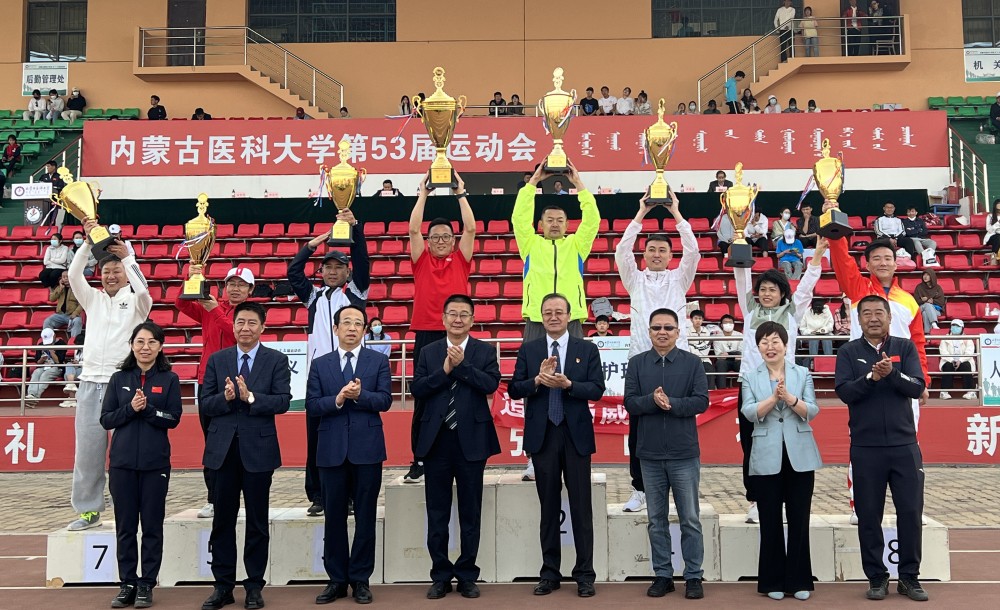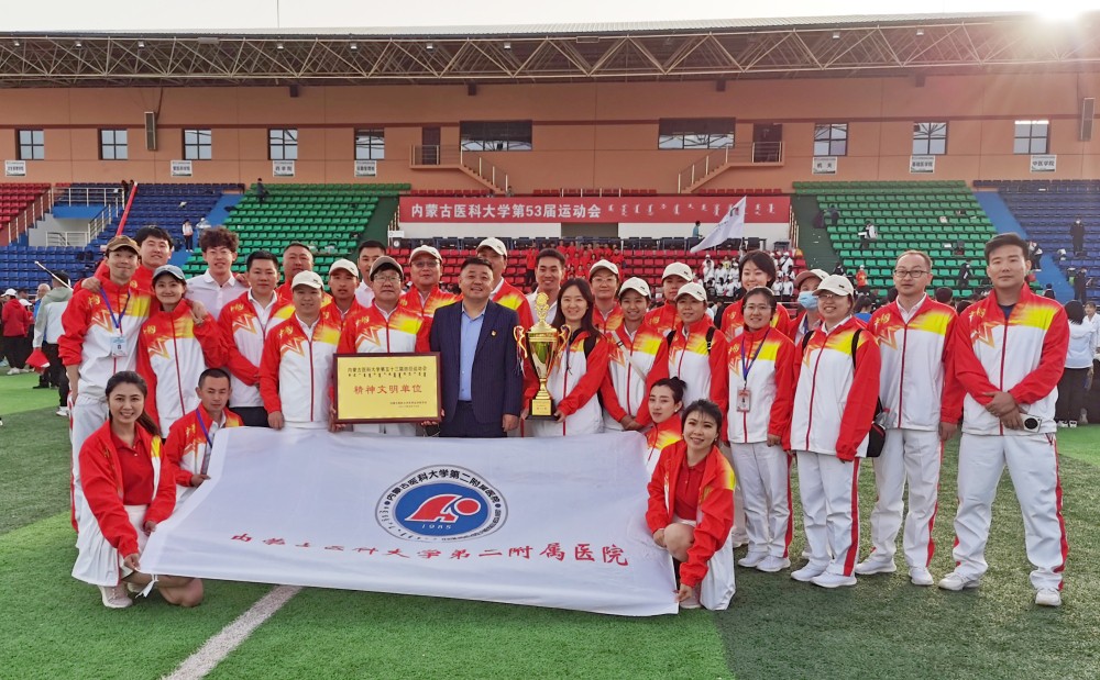 5月18日至19日,内蒙古医科大学第53届运动会在风雨操场举行。18日上午的开幕式上,我院党委书记刘万林、党委副书记赵岩、党委委员、纪委书记跟锁、党委委员、副院长邱颐带队,来自临床、医技、综合保障部门共70余名职工组成的方队迈着矫健的步伐走过主席台,队员们精神抖擞、容光焕发,“崇德精医 信实济世 团结拼搏 勇创佳绩”的院训口号响彻全场。